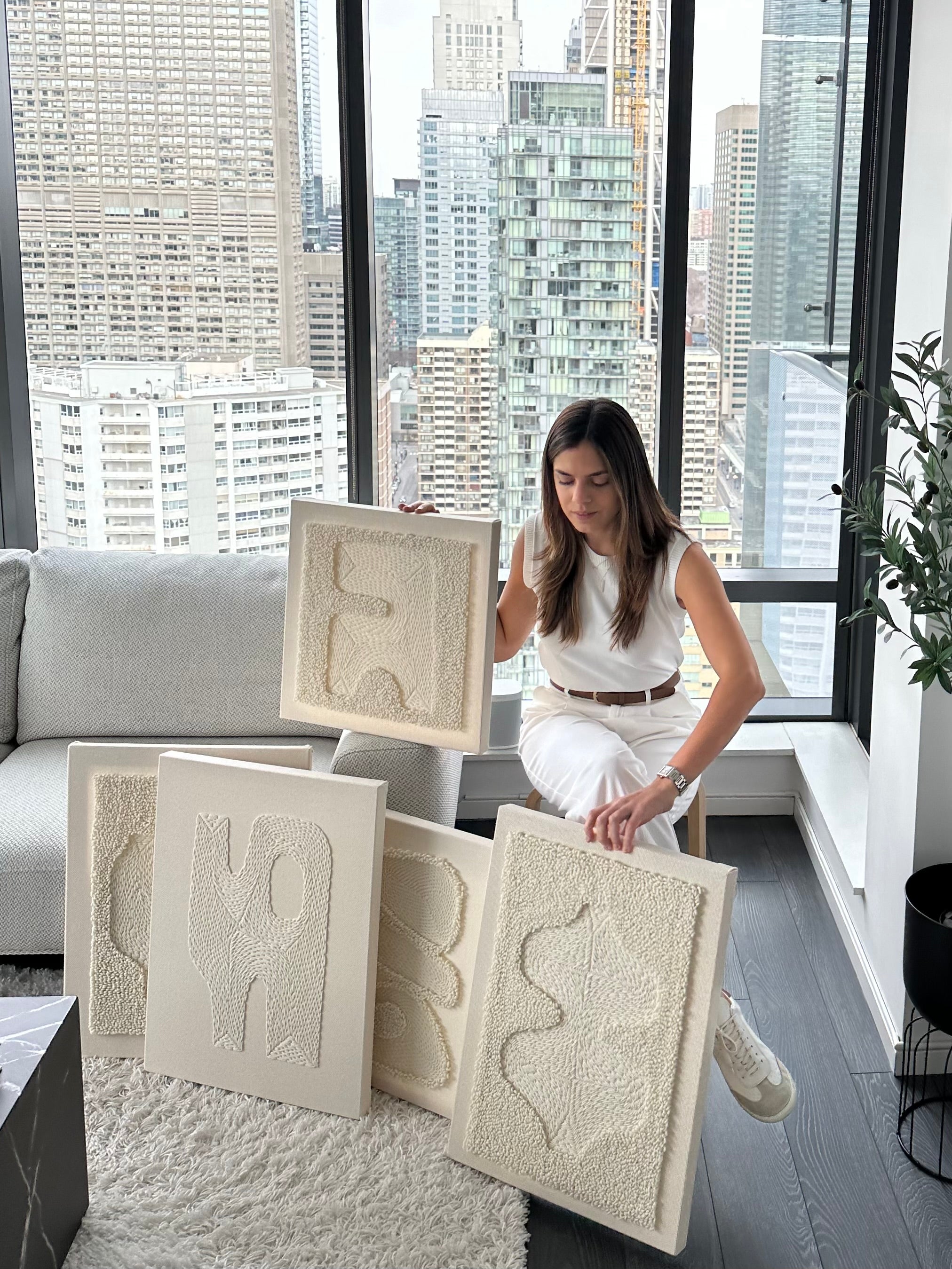 Each artwork begins with a conceptual sketch, where the interplay of texture and form is thoughtfully considered.
