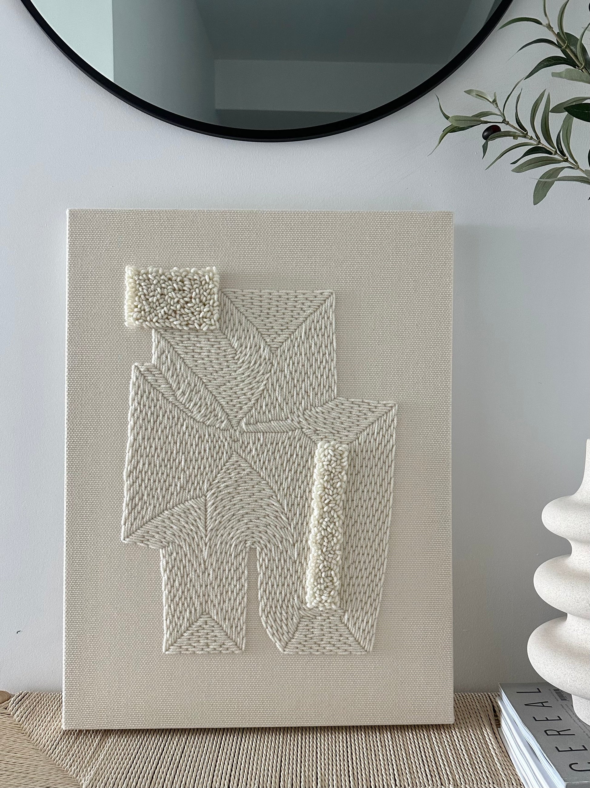 Materials: acrylic yarn on 100% cotton monks cloth